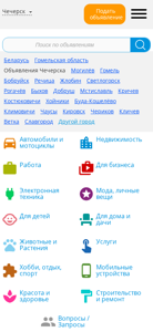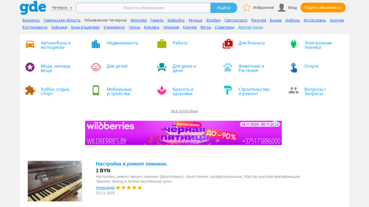 | SEO-описание | Gde.by - популярная доска бесплатных частных объявлений Чечерска. На нашем сайте Вы найдете актуальные объявления от частных лиц и деловых организаций Чечерска. Любой желающий может подать собственное объявление абсолютно бесплатно. |