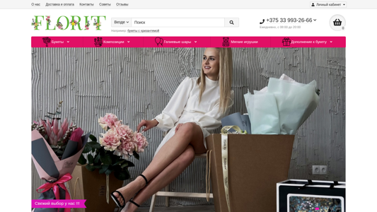 --- This website is an online flower shop based in Orsha, Belarus, offering a wide range of fresh and high-quality flowers for delivery. The title and description indicate that customers can purchase flowers with free and quick delivery in Orsha. The website has a comprehensive selection of blooms, including bouquets, compositions, helium balloons, soft toys, and additional add-ons. Customers can contact the shop via several phone numbers and email address provided. The shop seems to offer a variety of bouquets, such as those with French roses, lilies, chrysanthemums, and more. The website also features categories for specific occasions, genders, and types of flowers, as well as a section for gifts and accessories. The design includes a search function and a shopping cart for users to browse and purchase items. The website is available in Belarusian and Russian languages.