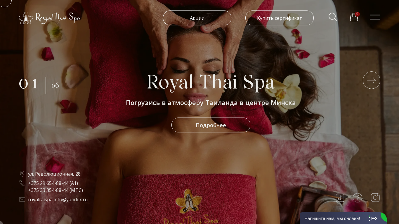 | SEO-описание | Тайский салон Royal Thai Spa - предлагаем для наших гостей более 30 СПА-программ и СПА-ритуалов, которые приведут Ваш организм в состояние равновесия, быстро добившись как глубокого расслабления, так и интенсивного притока жизненных сил |
