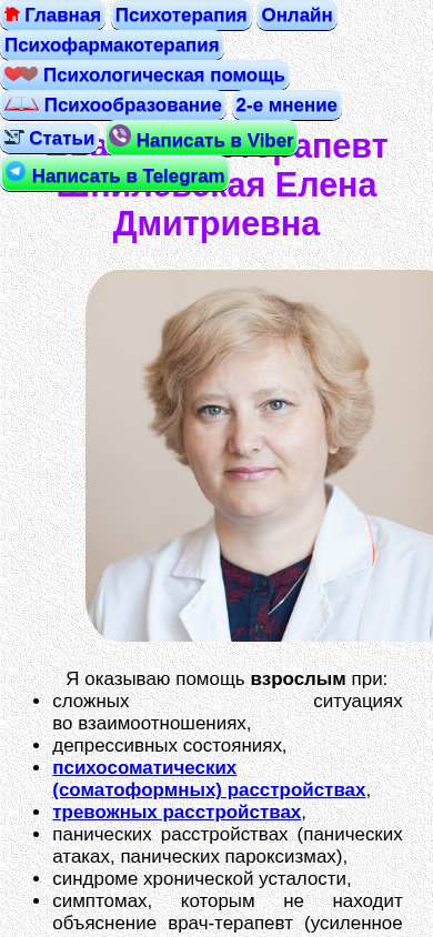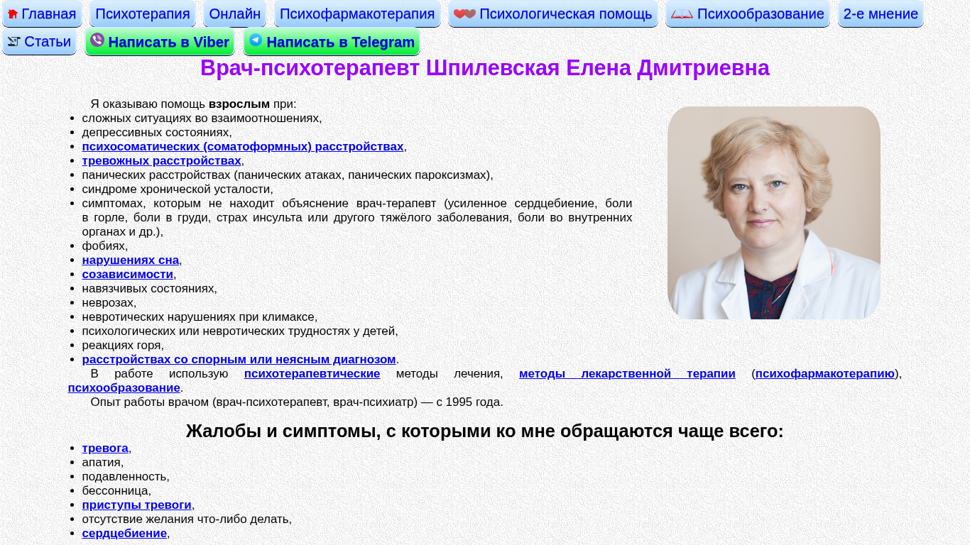 Название / ЗаголовокВрач-психотерапевт и медицинский психолог Шпилевская Елена Дмитриевна|Психотерапия в Минске (Беларусь)