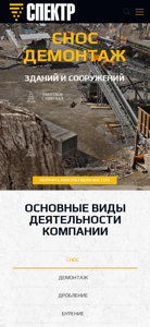 The portal is a demolition and dismantling company based in Belarus, specializing in the removal of various buildings and structures. The title of the website is "Главная - Снос и демонтаж зданий и сооружений" (Main - Demolition and dismantling of buildings and structures). The description includes keywords such as "демонтаж" (dismantling), "зданий" (buildings), and "сооружений" (structures). The company offers a range of services including mechanical demolition, partial demolition, and elemental dismantling, as well as the removal of metal structures and technological equipment. They also provide crushing services for concrete, brick, and other materials. The website offers a quote request form and contact information for phone inquiries. The company has been in operation since 2008 and