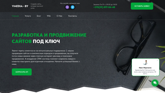 --- The portal vmedia.by offers website development and promotion services in Brest and Minsk. They specialize in creating, launching, and maintaining custom websites, including online stores, landing pages, and corporate sites. Users can contact them by calling +375 (29) 897-84-48.