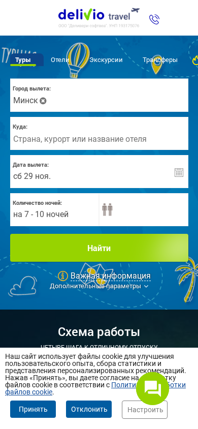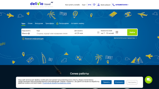 | AI-анализ | The website Delivio Travel is a Belarusian travel agency site, with a focus on travel-related content, including visas, transfers, hotels, curatories, and various forms of travel support. The site's title is "Delivio Travel," and the most frequently occurring words in the description meta tag are "лет" (flights), "визы" (visas), "нужна" (need), "перелет" (transfer), "byn" (Belarusian currency), "туриста" (tourist), "трансферы" (transfers), "отели" (hotels), "курорты" (resorts), "памятка" (memorial), "страхование" (insurance), "виза" (visa), "экскурсии" (excursions), |