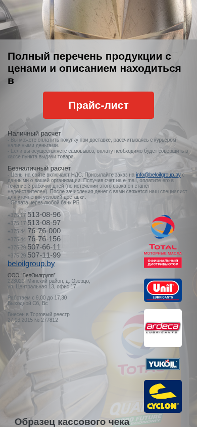This online resource is a developing e-commerce store, with a focus on selling a full list of products with descriptions and prices. Users can make purchases through various payment methods: cash on delivery, or bank transfer. The site includes a contact email for placing orders and obtaining an invoice, which should be paid within three business days. The store is operated by ООО “БелОилгрупп” and can be reached at the provided phone numbers during business hours, Monday to Friday. The business was registered in 2015.