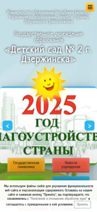 This website is for a kindergarten in Dzerzhinsk, Belarus, named 'Детский сад № 2 г. Дзержинска'. The title and description of the website provide information about the kindergarten number and location. The website's keywords include 'образования' (education), 'учреждения' (institutions), '2025', 'новости' (news), 'контакты' (contacts), 'йская' (Jaska), 'детский' (children's), 'сад' (garden), 'дзержинска' (Dzerzhinsk), 'обращения' (applications), 'беларусь' (Belarus), 'нская' (Nskaya), 'учреждение' (establishment), 'дошкольного