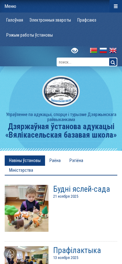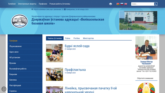 | AI-анализ | The portal "ДУА «Велікасельскі ВПК ДС–БШ Дзяржынскага раёна»" (vselo.schoolnet.by) is a Belarusian educational website dedicated to a specific administrative region, Dzierzhynski Raion. The title translates to "The Great Village Council of Dzierzhynski District School-College". The website has a significant focus on the months of November and December, with keywords related to education, work, and schools in the region. Keywords include "станови" (standings), "адукацыя" (education), "школа" (school), and "праф" (principal). Other top words include "Дзяржынскага раёна" (Dzierzhynski district), "лактыка" ( |
