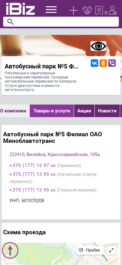 | Название / Заголовок | Автобусный парк №5 Филиал ОАО Миноблавтотранс - Регулярные и нерегулярные пассажирские перевозки. Грузовые автомобильные перевозки по Беларуси. Услуги диагностики и ремонта автотранспорта.. 222410, Вилейка, , Красноармейская, 105а |