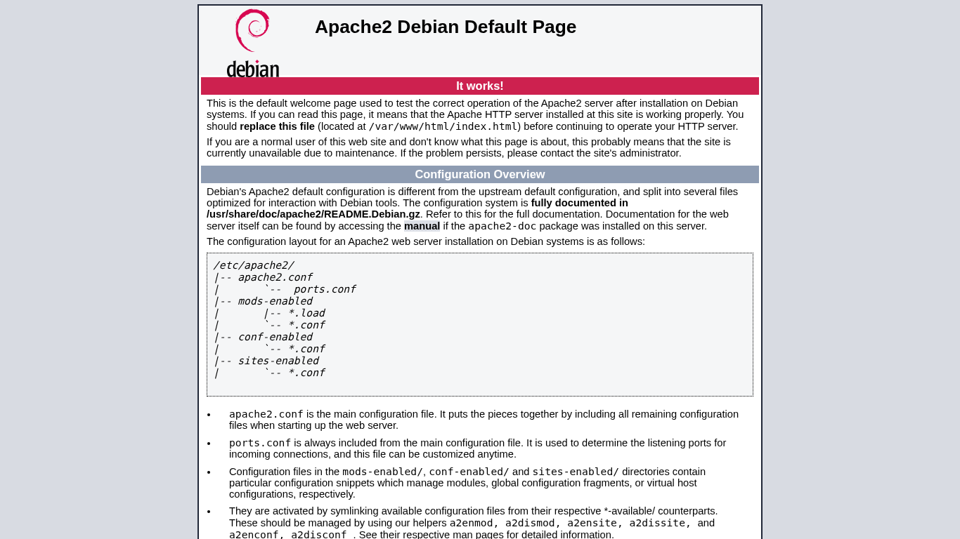 Название / ЗаголовокApache2 Debian Default Page: It works