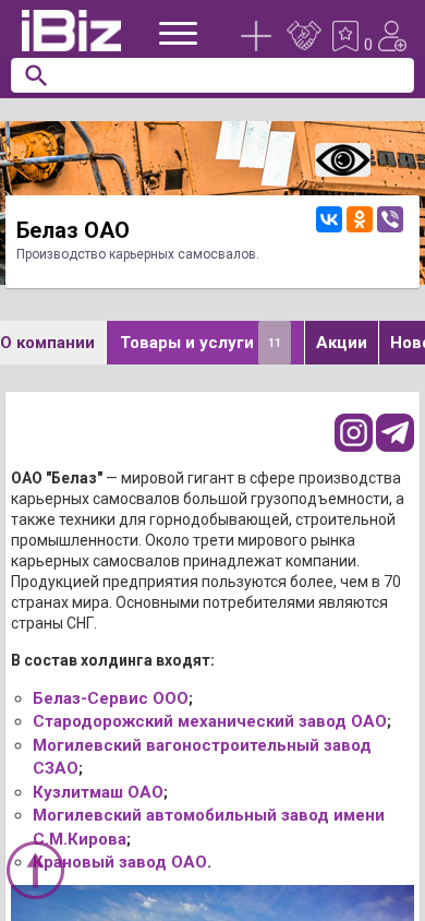 | AI-анализ | --- This website is for Belaz OAO, a company based in Belarus that specializes in the production of heavy-duty cargo hauling vehicles, specifically carrier self-loading trucks, or self-loading dump trucks. The company is located in the city of Zhodino and has a long history of 40 years. The website provides information on the company, its products, and services, including contact details and a map for directions. The main product lines of Belaz OAO include carrier trucks, trucks with enhanced ground clearance, loaders, bulldozers, machines for metalworking industries, machines for serving mining transportation tasks, machines for special purposes, and transport equipment. The company also offers services related to its products. The website is part of a larger holding company that includes Belaz-Service OOO, Starodorozhsky Mechanical Factory OAO, Mogile |
