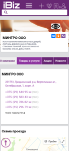 | AI-анализ | The portal mingro.ibiz.by is a business-to-business marketplace for companies and organizations in Belarus. It features a company profile for MINGRO OOO, which specializes in the manufacturing of interior doors, stairs, wooden interiors, wall panels, and arches made of oak, birch, and ash wood on order. The website provides a contact scheme, phone numbers, and an address for the company located in Grodno region, Verтелишки agency, October Street 1, corp. A. The portal also includes a map and information on how to get there, business hours, and contact information for the company. Additionally, it offers a section for user reviews on social media platforms VKontakte and Odnoklassniki, as well as a phone number for inquiries and a link to the company's website kalevka.com. The |