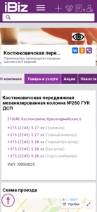 Название / ЗаголовокКостюковичская передвижная механизированная колонна №260 ГУК ДСП - Строительство, производство товарных смесей и ж/б изделий.. 213640, Костюковичи, , Красноармейская, 6