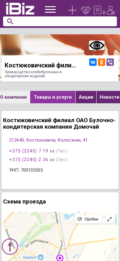 favicon Костюковичский филиал ОАО Булочно-кондитерская компания Домочай - Производство хлебобулочных и кондитерских изделий.. 213640, Костюковичи, , Колхозная, 41
