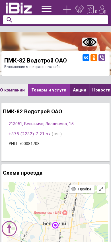 | Название / Заголовок | ПМК-82 Водстрой ОАО - Выполнение мелиоративных работ.. 213051, Белыничи, , Заслонова, 15 |