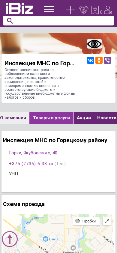 The portal is a website for the Tax Inspection of the Goretsky District, dedicated to the implementation of control over the observance of tax legislation, the correctness of calculation, the completeness and timeliness of the submission of taxes and fees to the corresponding budgets and state extra-budgetary funds. The website provides information on the company, its products and services, contact details, and a map with a scheme of arrival. It also offers a section for free classified ads, news, vacancies, and user reviews. The company's operating hours are from 9:00 am to 6:00 pm, Monday to Friday, with no lunch break. The contact number is +375 (2736) 6 33 xx.