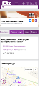 | AI-анализ | The website is a production facility for dairy products under the name Клецкий Филиал ОАО Слуцкий сыродельный комбинат, located in the city of Клецк, , at the address Привокзальная, 6. The company specializes in the production of dairy products and provides contact information, including phone numbers and an address for visitors. The website also offers information on business hours, which are from 9:00 to 18:00, Monday through Friday, with no breaks for lunch. The company can be found in the category of Mолочная промышленность (dairy industry) on the Ibiz.by business directory. |