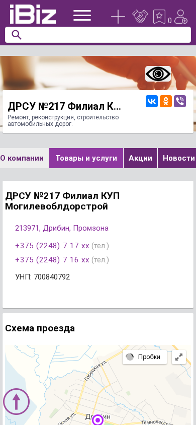 Название / ЗаголовокДРСУ №217 Филиал КУП Могилевоблдорстрой - Ремонт, реконструкция, строительство автомобильных дорог.. 213971, Дрибин, , Промзона