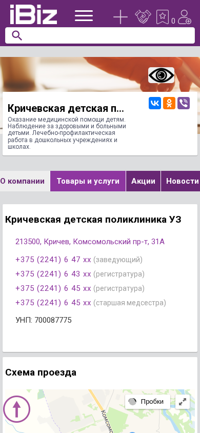 | Адрес | детьми. Лечебно-профилактическая работа в дошкольных учреждениях и школах.. 213500, Кричев, Комсомольский пр-т, 31А |