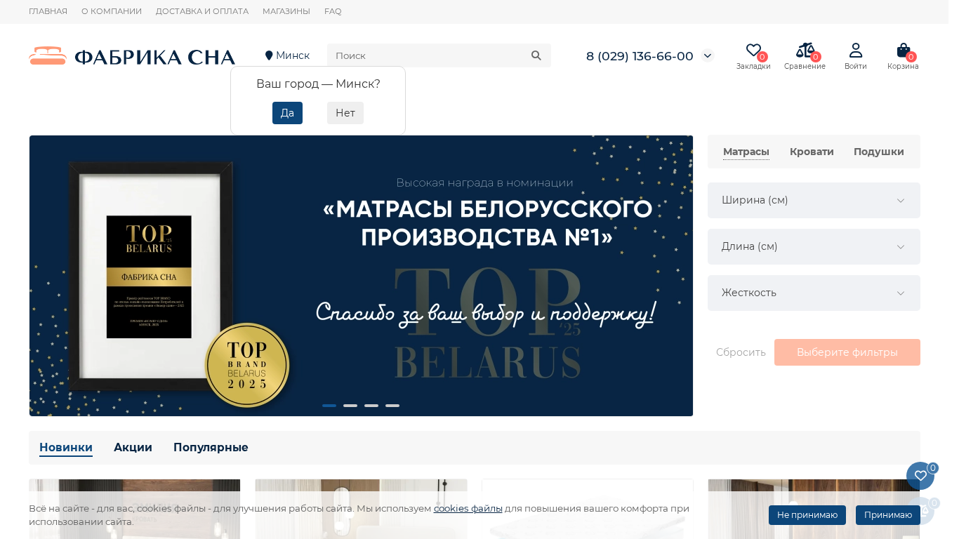 | SEO-описание | Официальный сайт производителя матрасов и ортопедических оснований. Фирменный интернет-магазин Фабрика Сна в Минске. |