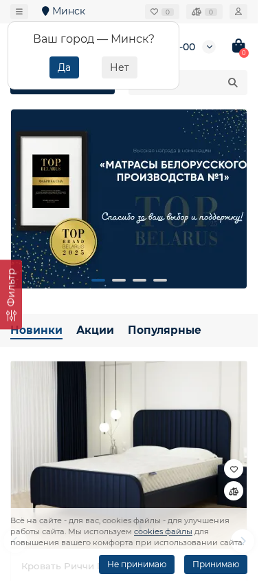 | AI-анализ | --- The website 'Фабрика Сна - ортопедические матрасы в Минске' (Fabrika Sna) is the official site of a mattress and orthopedic foundation manufacturer in Minsk, Belarus. It features a company profile, delivery and payment information, and an online store. The site offers a range of mattress types including spring, memory foam, and latex, with various firmness levels, sizes, and features such as adjustable bases and memory foam pillows. Users can create an account for easier shopping and compare products. The site also includes a FAQ section and customer service contact information. The main categories of products are mattresses, beds, pillows, and bedding, with various filters for size and type. |