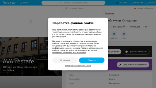| Адрес | Принять, Персональные настройки Cookie, Ресторан грузинской кухни Хинкальня в Бресте - контакты, карта проезда., Меню, Поиск мест и событий, НГ 2026 |