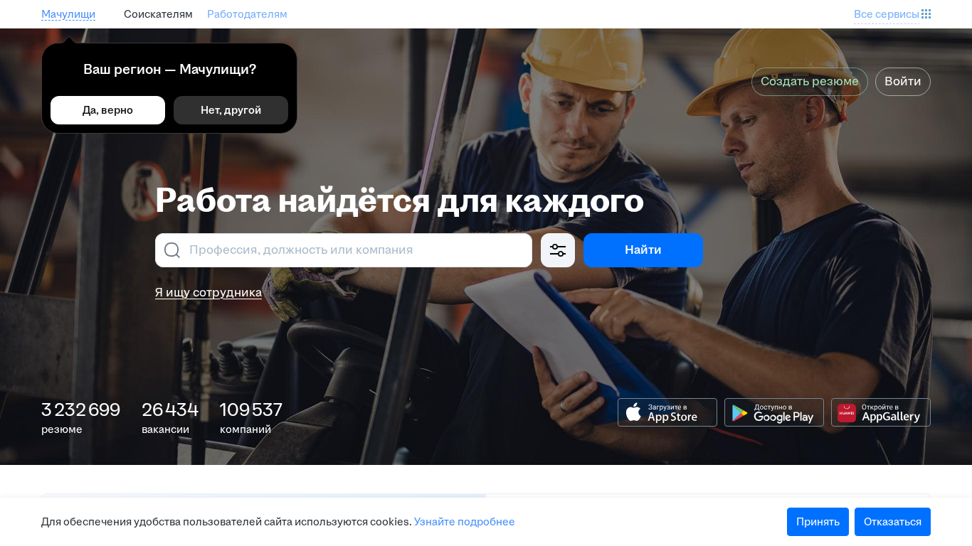 | Canonical URL | https://machulishchi.rabota.by/ |