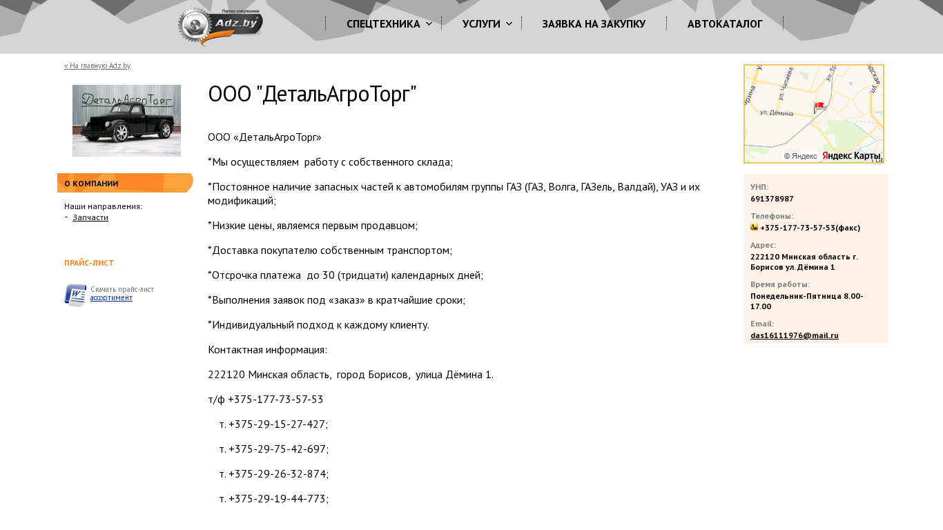 | Название / Заголовок | ООО "ДетальАгроТорг" |