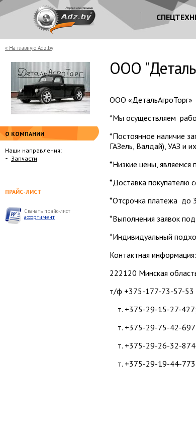 | SEO-лексика | ооо детальагроторг запчасти adz прайс-лист 375-177-73-57-53 222120 минская область борисов мина газ спецтехника техника оборудование услуги аренда ремонт кредит лизинг |