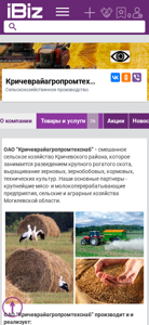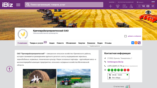 | AI-анализ | The portal krichevagros.ibiz.by is an agricultural production company located in Krichev, Belarus, at the address Timiryazeva 1. They specialize in livestock farming, cultivation of grains, legumes, corn, technical crops, and offer various services including sales and repairs of agricultural equipment, reconditioning of refrigeration equipment, and provision of fertilizers. The company also offers transportation services for both physical and legal entities, focusing on hauling agricultural produce. Their main partners are major meat and dairy processing plants and farms in the Moгилевskaya oblast. The company's offerings include milk, beef, spare parts for agricultural machinery, grains, and repairs of refrigeration equipment and organic fertilizers for rent. Experienced and skilled technicians provide prompt and efficient repairs, source replacement parts, and service refrigeration equipment. Transport |