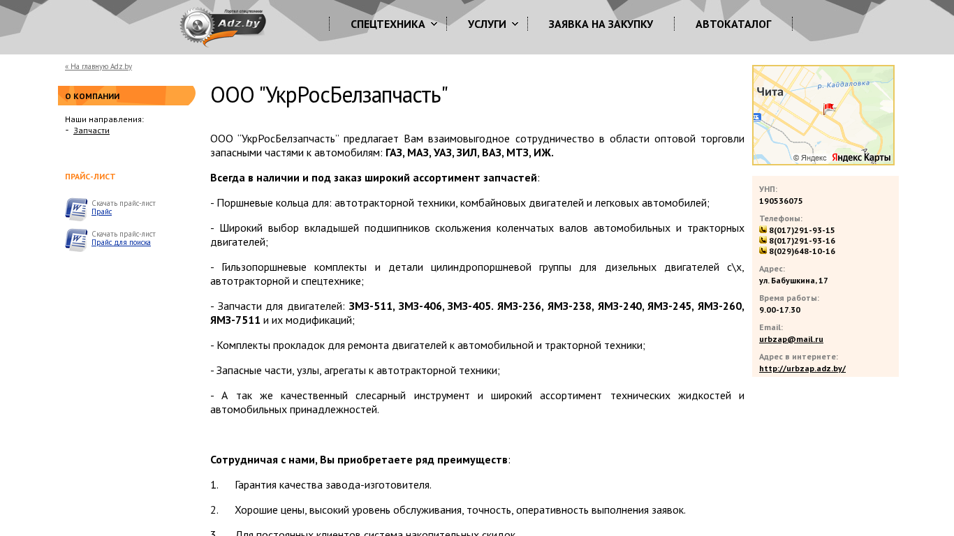 | Название / Заголовок | ООО "УкрРосБелзапчасть" |