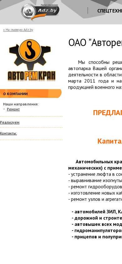 | SEO-лексика | ремонт модификаций услуги adz контакты факс кранов тел 8-01795 оао авторемкран 3-11-46 133 avtoremkran tut утн спецтехника техника оборудование запчасти |