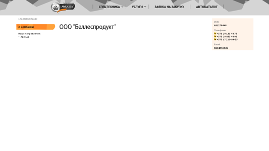 | AI-анализ | This online resource belongs to OOO "Беллеспродукт", a Belarusian company specializing in the areas of Special Equipment, Technology, Equipment Rental, Repair, Leasing/Credit, Logistics, and Purchase Requests. The website offers an Auto Catalog, and its top keywords include "375," "OOO," "Беллеспродукт," "аренда," "adz," "спецтехника," "техника," "оборудование," "запчасти," "услуги," "ремонт," "кредит," "лизинг," "грузоперевозки," "заявка," and "закупку." The domain name is b-l-produkt.adz.by. The company's contact details are provided, including phone numbers and an |