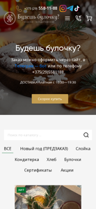 | AI-анализ | The website is for a bakery-confectionery in Brest, Belarus, with a network of bakeries and a large selection of bread, baked goods, and desserts. The website offers a new year's assortment and kruassans made with 82.5% slivered oil. Customers can place orders by phone or through the site. The product "Hit" is also available for purchase as a new item, and there are certificates and discounts offered. The weight and composition of a product, named "Слойка" or "Layer Cake," are provided, with a price of 39 rubles for 500 grams. The website has a shopping cart and allows users to purchase items directly through the site. The domain is bbpekar.by. |
