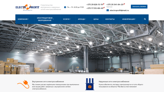 | AI-анализ | The web project "Electroprofit.by" is a company website based in Minsk, Belarus, offering electrical mounting works with a 10-year guarantee. The site provides information on the company, its services, certifications, partners, and customer reviews. The main services include the installation and maintenance of electrical networks and power supplies, as well as the installation of electrical panels, wiring, lighting, and grounding systems. The site also offers the rental of excavators and cranes. The contact information includes phone numbers and email addresses for inquiries and rentals. The domain name is "electroprofit.by". |