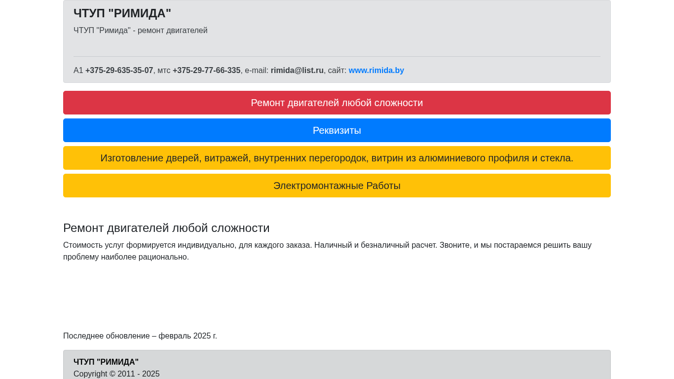 | Название / Заголовок | rimida.by - ремонт двигателей любой сложности - Римида ЧТУП |