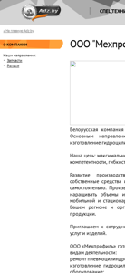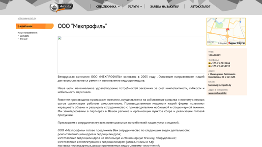 | AI-анализ | The web project "ООО "Мехпрофиль" (LLC Mehprofil) is a Belarusian company specializing in the repair and manufacturing of hydraulic cylinders. Established in 2005, the company's main goal is to maximally satisfy the needs of its clients through competence, flexibility, and mobility of its personnel. The production capacity allows for the expansion of volumes and partnerships with manufacturers of mobile and stationary equipment. The website offers collaboration in various business areas: repair of pneumo and hydraulic cylinders, manufacturing of hydraulic cylinders for mobile and stationary equipment, manufacturing of cylinder components, and the provision of non-standard, rarely used hydraulic and pneumatic seals. The company uses high-quality tubes and chromed or polished rods, produced at specialized |