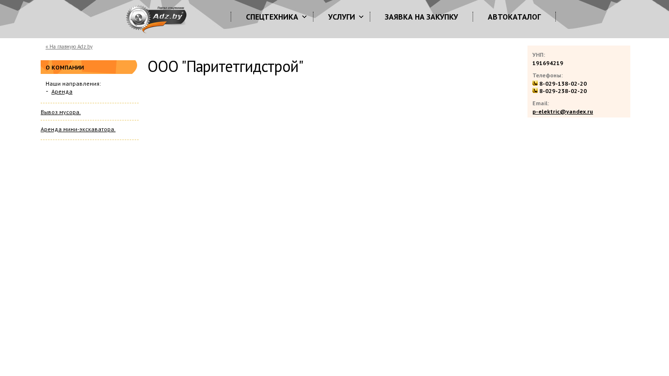 | Название / Заголовок | ООО "Паритетгидстрой" |