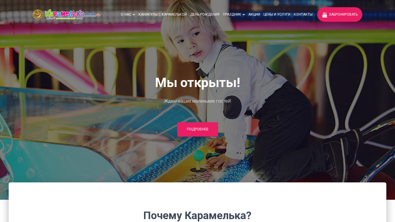 | AI-анализ | --- This website is for a children's entertainment center named Карамелька located in Arena-city, Minsk. The new complex offers a unique labyrinth, play attractions, and a large inflatable bouncy castle. It is an ideal place for children's birthday parties and celebrations. |