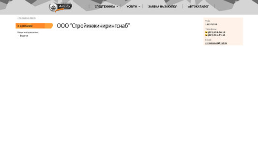 | AI-анализ | This online resource is the official website of OOO "Стройинжинирингснаб," a Belarusian company specializing in the rental, repair, sales, and leasing of construction engineering equipment and vehicles, as well as spare parts and services. The site includes sections for special equipment, regular equipment, and construction machinery, with options for requesting quotes and making purchases. The domain is registered with Adz.by and was last updated in 2014. The company's contact information, including phone numbers and email address, is provided on the site. |