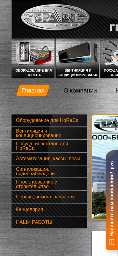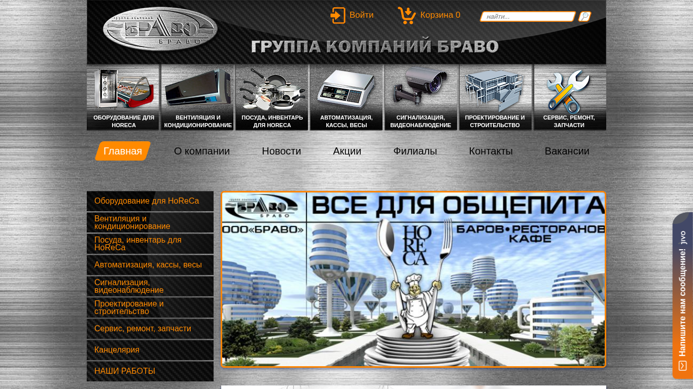 | AI-анализ | The web project "Браво | От проекта до объекта" (Bravo | From project to object) is an e-commerce website dedicated to selling various types of equipment for the HoReCa industry, such as ventilation and conditioning systems, kitchenware, and inventory. The site offers services, repairs, and spare parts. The main menu includes sections for the company, products, and services. The site integrates multiple CSS and JavaScript files from various modules, including Ubercart, Ctools, and Video Filter. The domain is bravo-brest.by. |