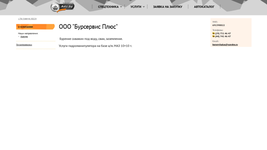 | AI-анализ | This website is for OOO "Бурсервис Плюс," a Belarusian company that offers services related to construction and drilling underwater. The site includes information about their equipment rentals, repairs, credit/leasing options, and cargo transportation services. Keywords associated with the website include "OOO," "Бурсервис Плюс," "услуги," "аренда," "грузоперевозки," "спецтехника," "оборудование," "запчасти," "ремонт," "кредит," "лизинг," and "заявка." The site also features an auto catalog and a contact email address. The company's main areas of focus are drilling services and cargo transportation. The website is registered under the .BY domain and is hosted on Adz.by. |