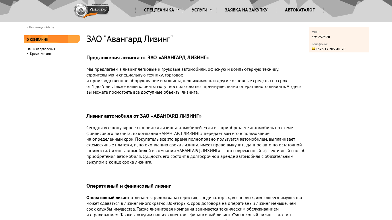 | Название / Заголовок | ЗАО "Авангард Лизинг" |