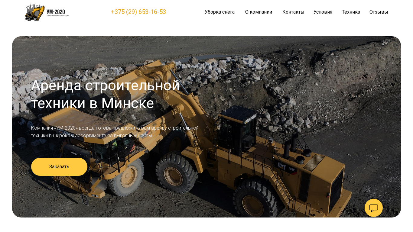 | SEO-описание | Компания «УМ-2020» всегда готова предложить вам аренду строительной техники в широком ассортименте по выгодным ценам. |