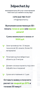 | Название / Заголовок | 3D печать в Миснке! Услуги 3Д печати на заказ по лучшим ценам! 100% гарантия качества! |