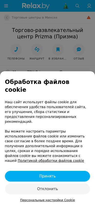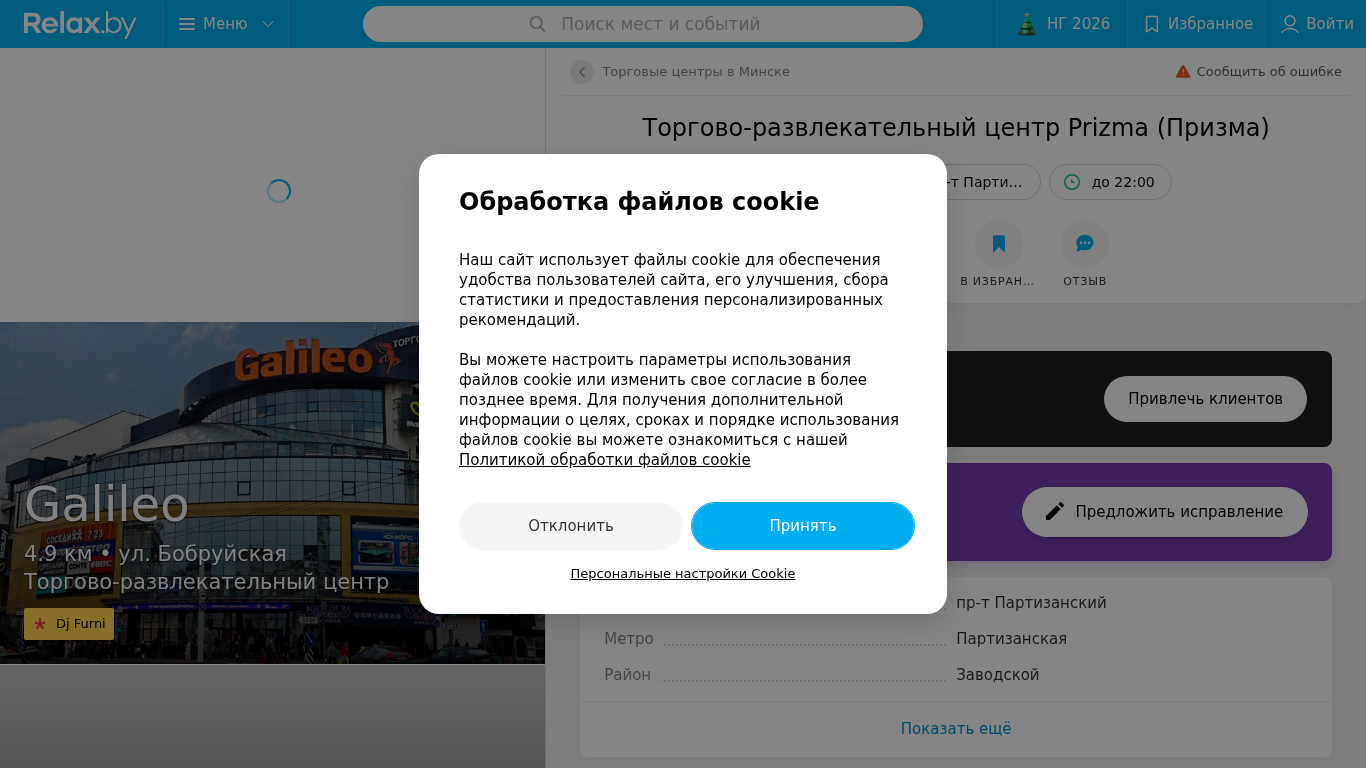 | SEO-описание | Торгово-развлекательный центр Prizma (Призма) в Минске – отзывы, телефоны, график работы и карта проезда на Relax.by |
