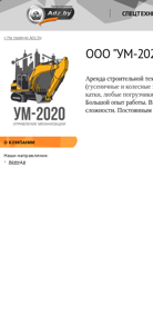 | AI-анализ | This online resource is a website for OOO "УМ-2020," a company based in Minsk, Belarus, specializing in equipment rental. The website offers a variety of construction machinery for rent, including excavators, bulldozers, cranes, and more, with over 30 units available in their fleet. The company has a significant amount of experience in executing contract and earthwork projects, and provides discounts to repeat customers. The website's address is um2020.by, and it can be reached by phone at +375296631653 during business hours of 9:00-18:00, or by email at info@um2020.by. The physical address is located at Shirokaia Street, house 3, apartment 148, in Minsk. |