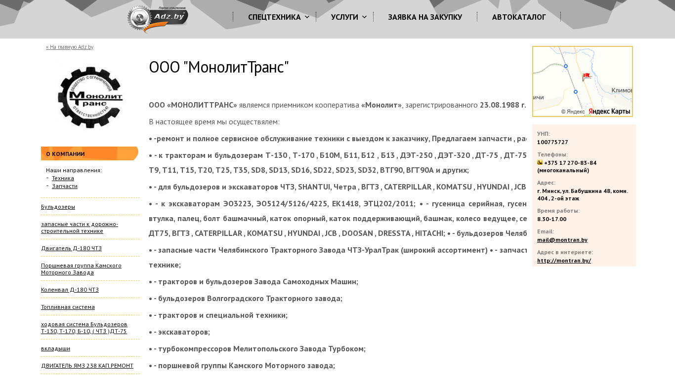 | Адрес | Возраст - 40-50 лет, 95% имеют высшее образование. ООО «МонолитТранс» работает на рынке запасных частей к тракторам и специальной технике с мая 2000 |