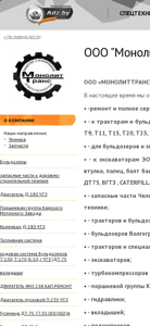 | AI-анализ | This website is dedicated to the company "МонолитТранс" which offers specialized technology, equipment, parts, services, rental, repair, credit/leasing, and cargo transportation. The main focus of the website is on equipment and parts for bulldozers, including those from the ЧТЗ brand, as well as drives, engine components, hydraulic systems, and tracks for bulldozers T-130, T-170, B-10, and DТ-75. The website provides detailed information on various parts such as heads of engine blocks, turbo compressors, and undercarriage components. Additionally, the website offers services for the repair of all components and engines of tractors of the 4th and 10th classes produced by ЧТЗ and ВгТЗ. The website also features a catalog of parts and equipment for sale, including |