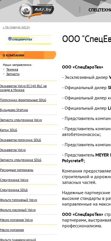 | SEO-лексика | volvo спецтехника техника sdlg фильтр компании экскаватор ооо спецевротех запчасти abg дилер представитель складе минске гидравлический подшипники частей официальный оборудование |