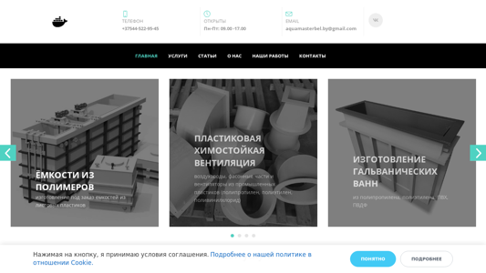 | AI-анализ | This online resource, titled "АквамастерБел," has been constructing pools in Belarus since 2002. It offers a free consultation, site visit, equipment selection, and cost estimation. The website provides information on plastic chemical-resistant ventilation, ducts, fittings, and ventilators made from industrial plastics (polypropylene, polyethylene, polyvinylchloride). It also specializes in the production of galvanic bathtubs from polypropylene, polyethylene, PVC, PVDF. The website features services for the production of chemical reactors for mixing and blending aggressive substances, as well as the manufacture of tanks from polymers upon request. The website offers services for the production of plastic chemical-resistant ventilation, ducts, fittings, and ventil |