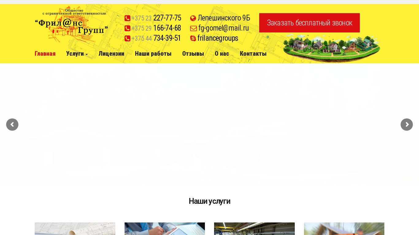 | SEO-описание | Проектная организация "ФрилансГрупп" выполняет проектирование для физических и юридических лиц зданий и сооружений различного назначения |